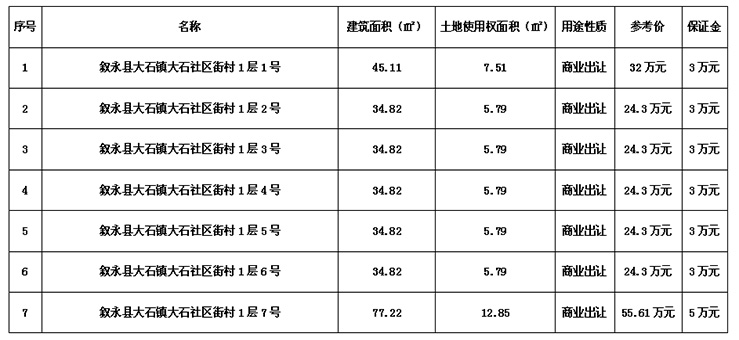 拍賣時間及地點:于2018年7月11日上午10:00在敘永縣公共資源交易中心開標室公開拍賣。
